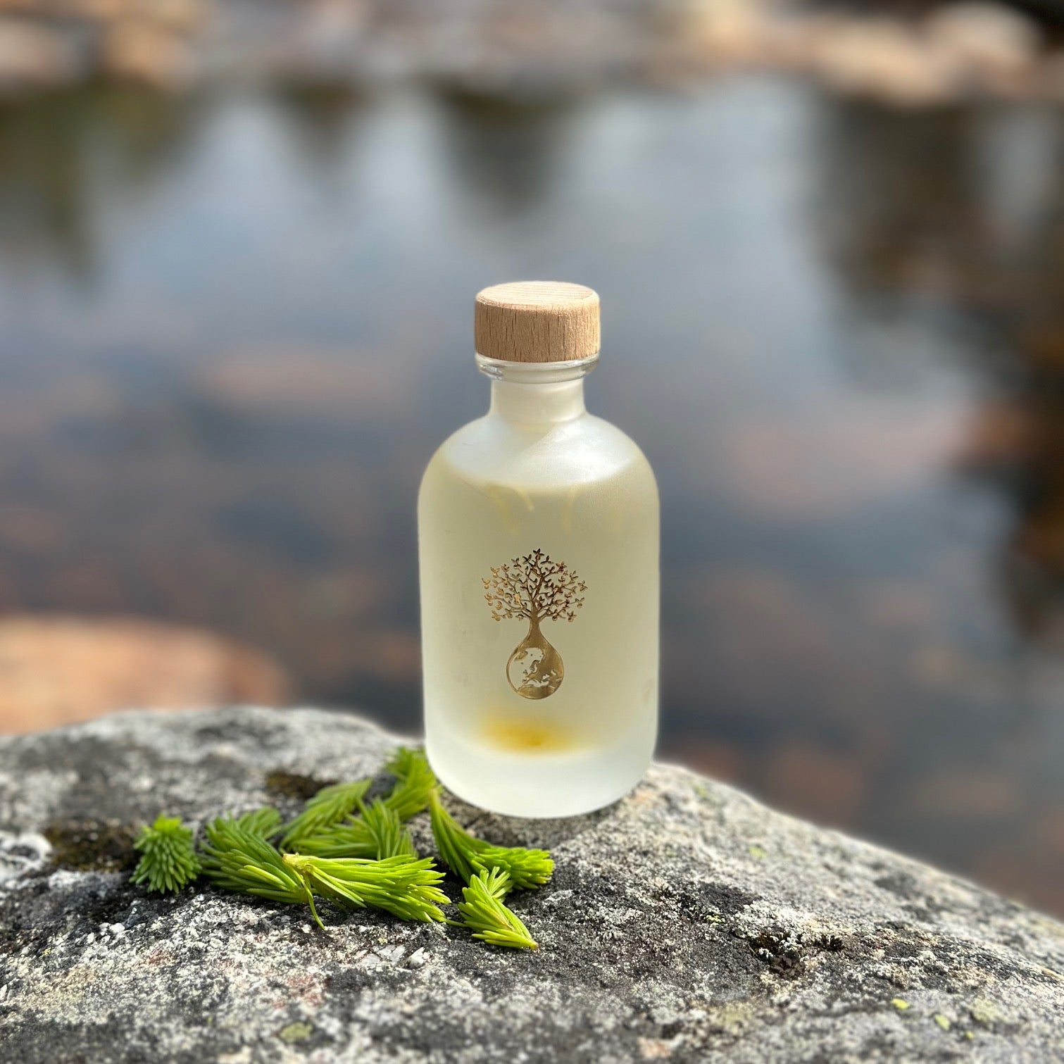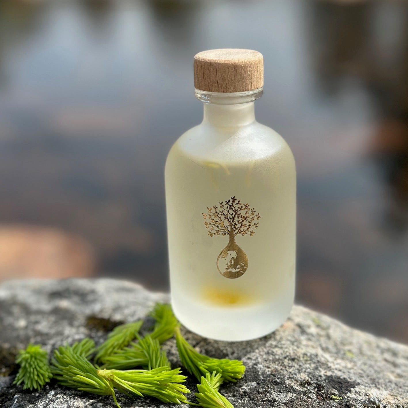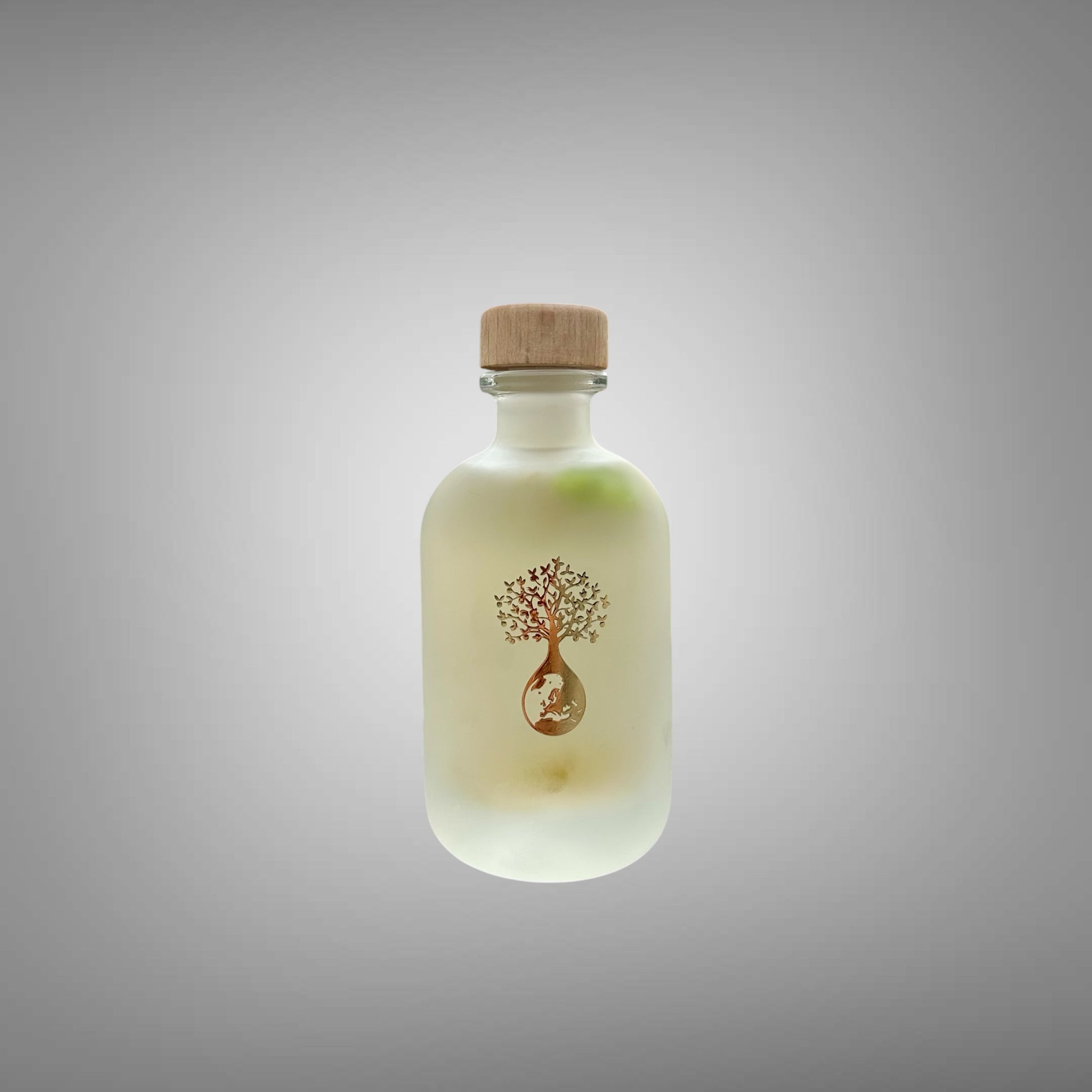 Flasken er i frostet glass med trekork og har en vakker lys grønn farge. Flasken kan, når den er tom, gjenbrukes til "alt". Et hyggelig alternativ som gave eller til kokker og kjøkken entusiaster. Er du en restaurant som ønsker noe vilt og vakkert med en spesiell smak, ta gjerne kontakt med oss!